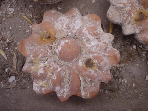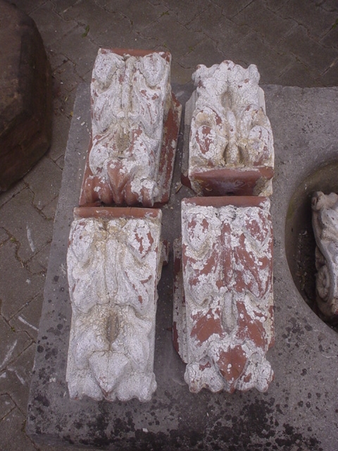 Verschiedene Zierornamente aus hart gebranntem Terra-Cotta, der Rosettendurchmesser beträgt ca.15cm